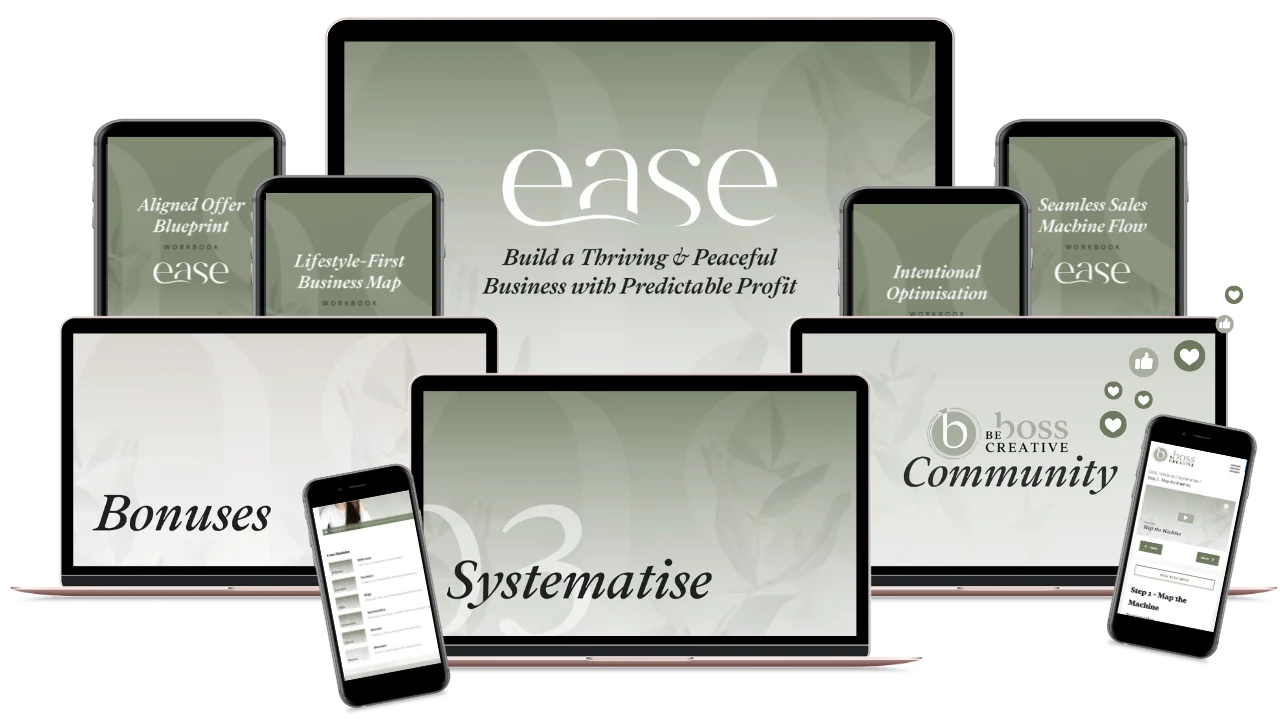 And that’s exactly what we focus on in EASE; building you a sales system that consistently converts, without compromising your time, energy, or sanity.